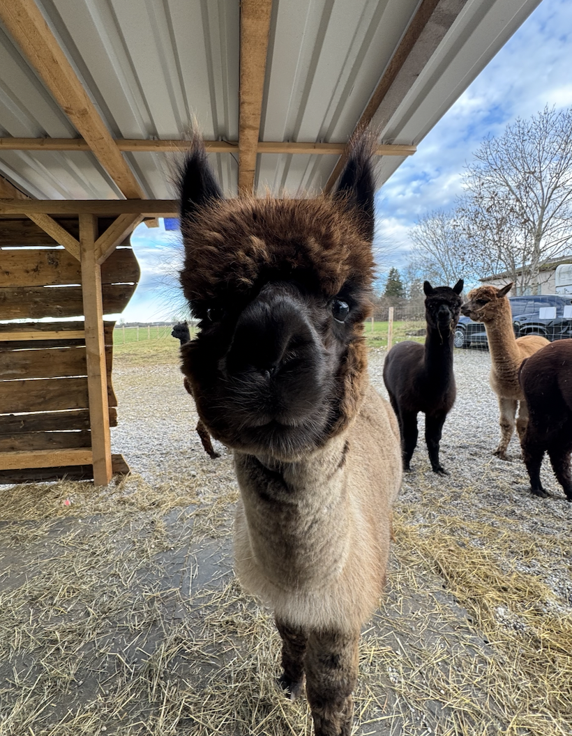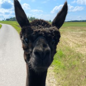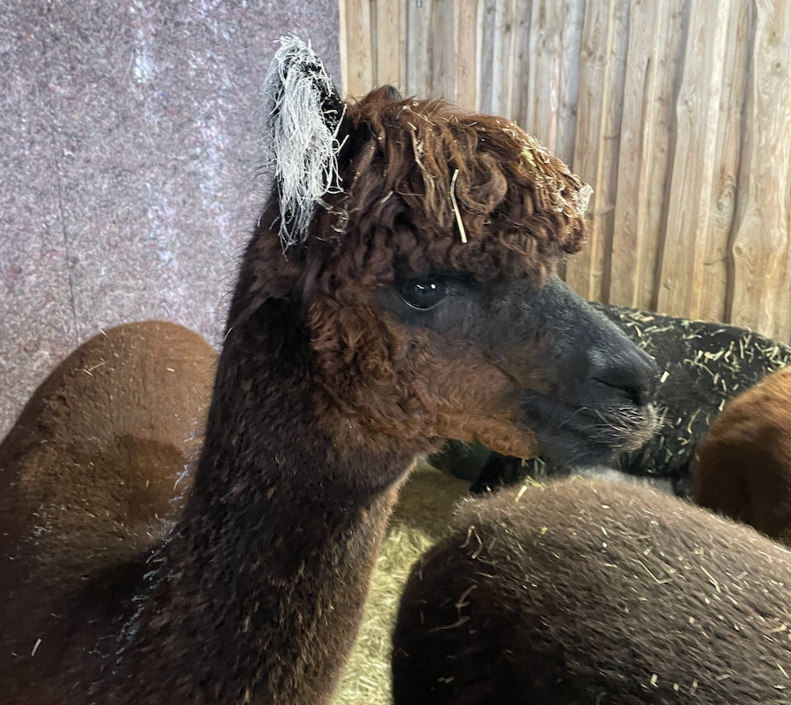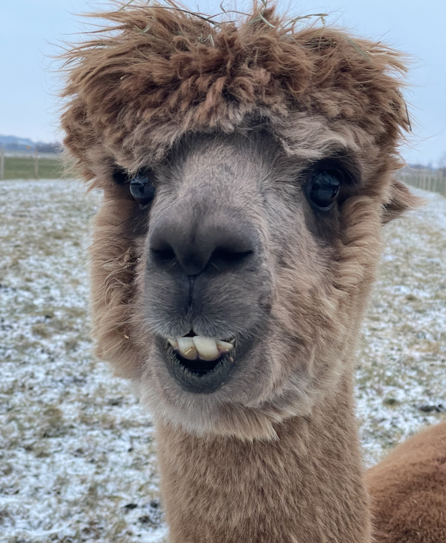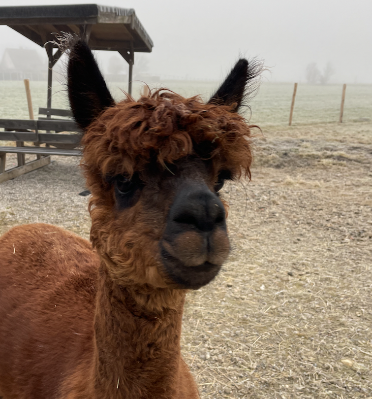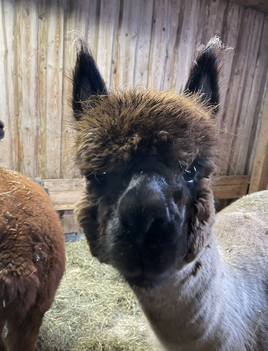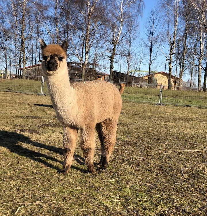 Alberto ist ein italienischer Name und bedeutet so viel wie „der Edle“ oder „der Vornehme“ – und genau so benimmt er sich auch. Sein Fell hat die besondere Farbe medium rose grey, und wer genau hinschaut, entdeckt kleine braune Pünktchen, die sogar schneller wachsen als der Rest seines Fells. Alberto ist ein sehr neugieriges Alpaka und tritt damit in die Fußstapfen von Toni. Bei Wanderungen läuft er am liebsten ganz vorne bei Tiger mit und erkundet mutig die Welt. Sieht er die bunten Futterbeutel, weiß er sofort, dass es etwas Leckeres zum Naschen gibt. Im Winter erkennt Alberto ganz genau, wann warmes Wasser zur Koppel gebracht wird, und ist natürlich der Erste, der sich anstellt, um davon zu probieren. Seine Ohren stehen dabei immer neugierig aufgestellt – jederzeit bereit für neue Abenteuer.