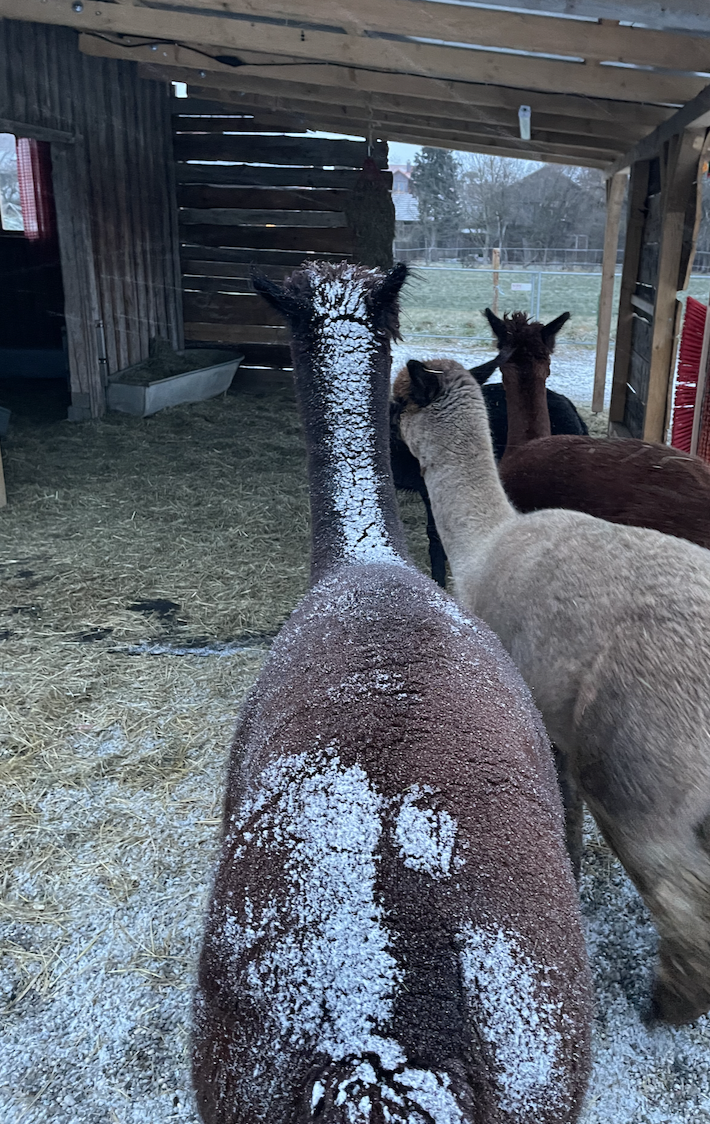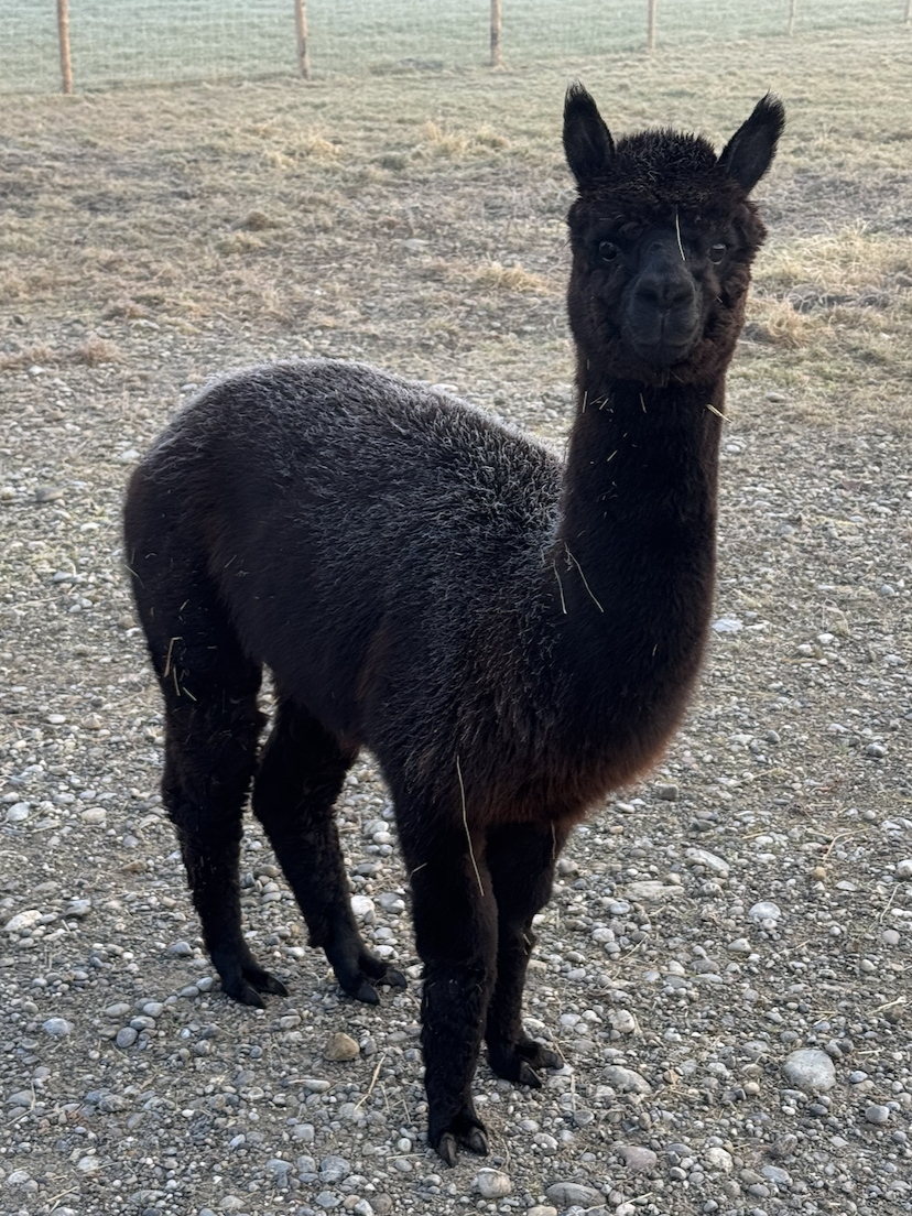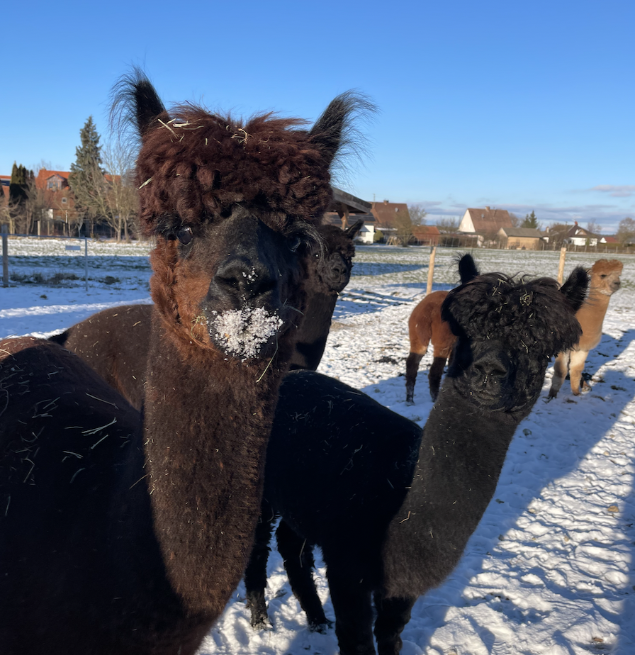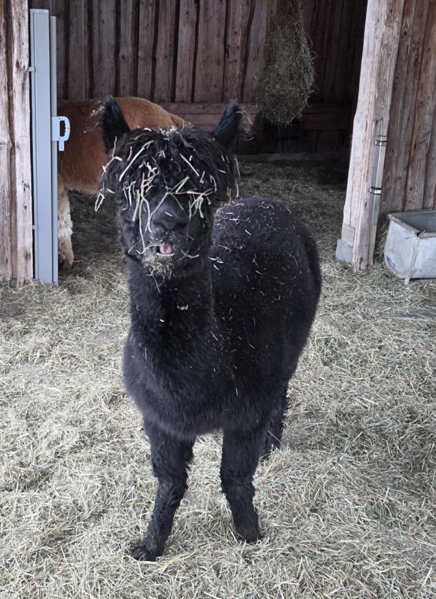 …und durfte so gemeinsam mit Alberto bei uns einziehen. Seitdem bereichert er unsere Herde auf ganz eigene Weise. Wanderungen findet Niklas spannend, denn es gibt immer etwas Neues zu entdecken. Am liebsten läuft er dabei mitten in der Herde, dort, wo er sich am sichersten fühlt. Für Leckerlies würde Niklas fast alles tun, und manchmal spuckt er sogar seine Kumpels an, um am Ende das größte Stück abzubekommen. Im Winter, wenn sein Fell wieder länger wird, wachsen bei Niklas auch die süßen „Pausbäckchen“, die ihn noch ein kleines bisschen niedlicher machen. Auch wenn er auf den ersten Blick schwarz wirkt, ist Niklas das eigentlich nicht: Im Vergleich zum tiefschwarzen Gucci schimmert sein Fell in einem sehr dunklen Braunton, durchzogen von rötlichen Grannenhaaren. Schön, dass du bei uns bist und unsere Herde so wunderbar ergänzt.
